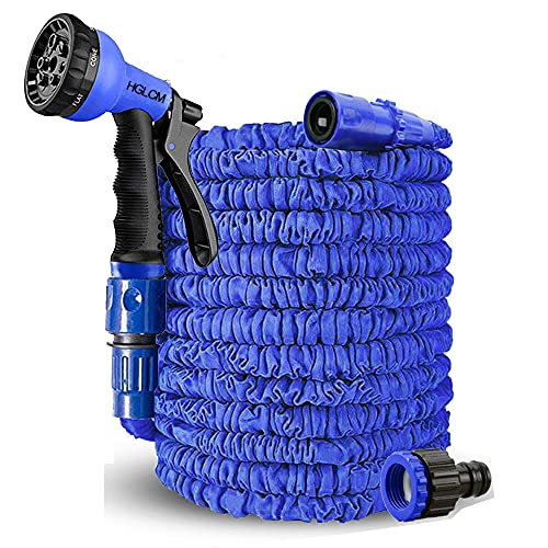HGLCM 25ft/50ft/75ft/100ft/125ft Expanding Garden Water Hose Pipe with 8 Function Spray Gun 3 Times Expandable Flexible Magic Hose Anti-Leakage Lightweight Easy Storage (New Blue, 50ft)
