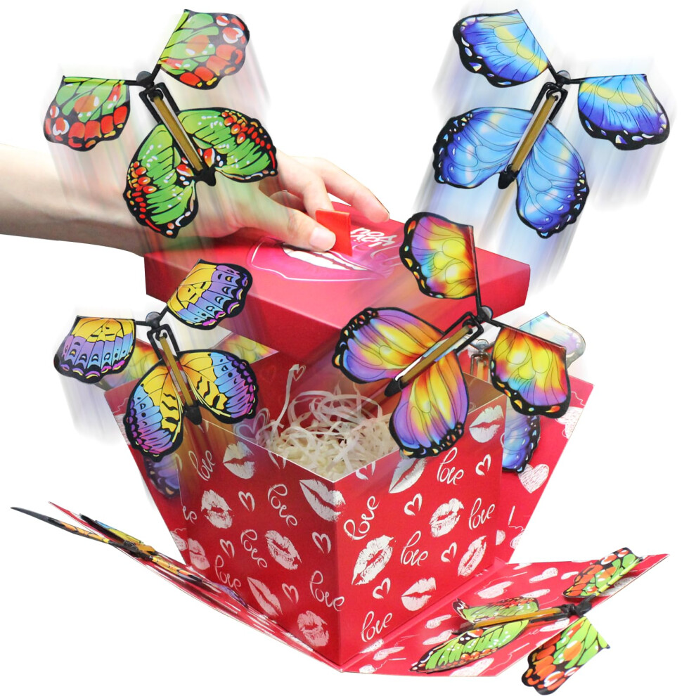 WUEURU Butterfly Explosion Gift Box Flying Butterfly Surprise Box Exploding Butterfly Birthday Box for Christmas Halloween New Year Birthday Weddin