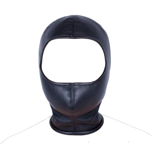 Head Cover PU Leather Head Face Hood HeadMask Leather Mask Exposed Mouth Exposed Eyes for Cosplay Party Club Wear,Black,One Size