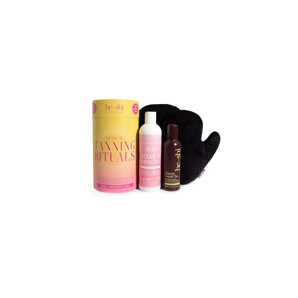 He-Shi Self Tan Express Instant Fake Tan Liquid ? Bronze Natural Quick Dry Formula with Tropical Smell - Vegan & Cruelty Free - Medium Bronzing Glow