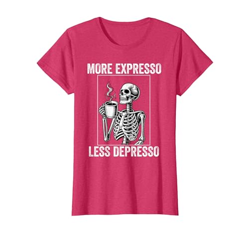 More Expresso Less Depresso Funny Coffee Expresso Lover T-Shirt, Women, Red Heather, Small
