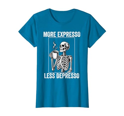 More Expresso Less Depresso Funny Coffee Expresso Lover T-Shirt, Women, Sapphire Blue, Medium