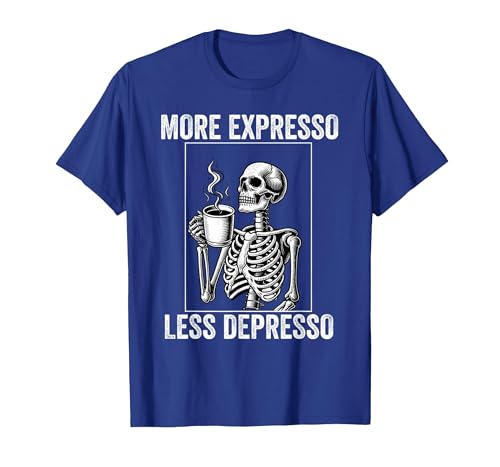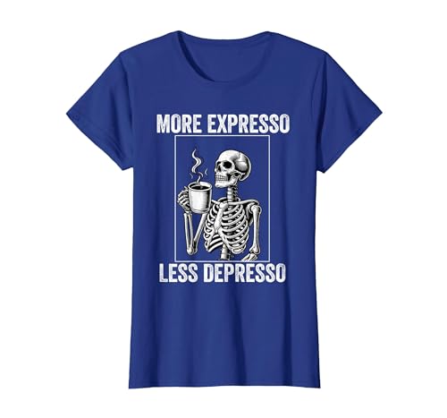 More Expresso Less Depresso Funny Coffee Expresso Lover T-Shirt, Women, Royal Blue, Large