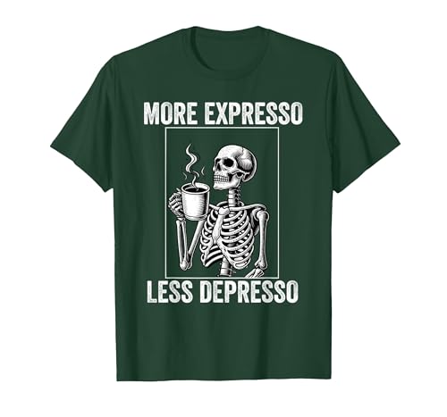 More Expresso Less Depresso Funny Coffee Expresso Lover T-Shirt, Men, Dark Green, Large