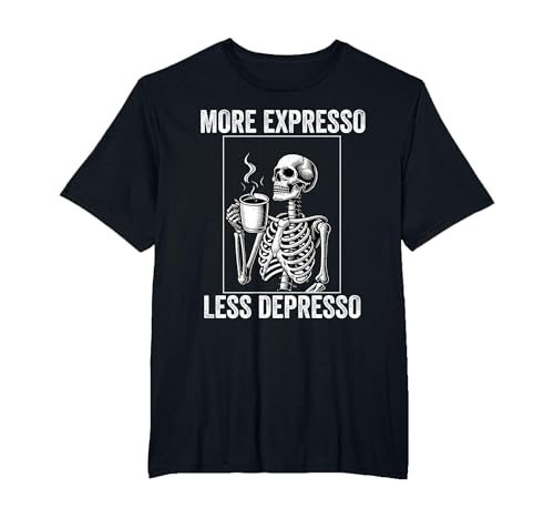 More Expresso Less Depresso Funny Coffee Expresso Lover T-Shirt, Men, Black, Medium