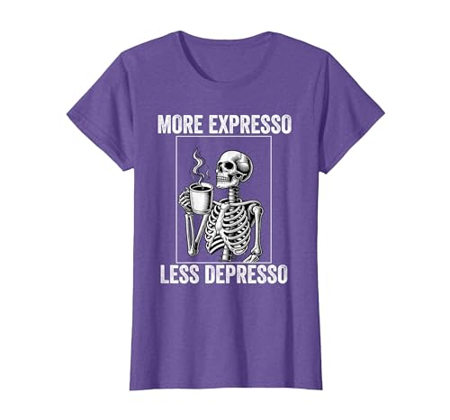 More Expresso Less Depresso Funny Coffee Expresso Lover T-Shirt, Women, Purple Heather, Small