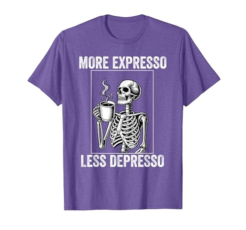 More Expresso Less Depresso Funny Coffee Expresso Lover T-Shirt, Men, Purple Heather, Large