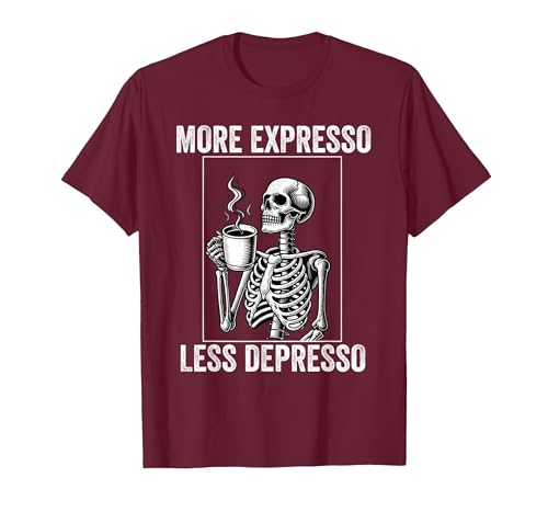 More Expresso Less Depresso Funny Coffee Expresso Lover T-Shirt, Men, Burgundy, Small