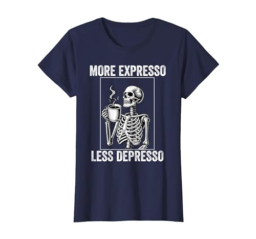 More Expresso Less Depresso Funny Coffee Expresso Lover T-Shirt, Women, Navy Blue, X-Small