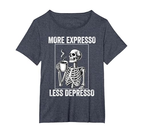 More Expresso Less Depresso Funny Coffee Expresso Lover T-Shirt, Women, Navy Blue, 3X-Large