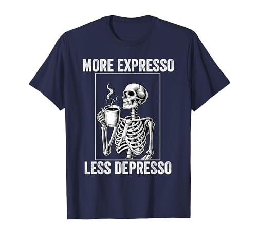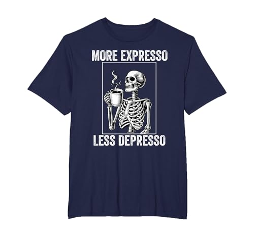 More Expresso Less Depresso Funny Coffee Expresso Lover T-Shirt, Men, Navy Blue, Large