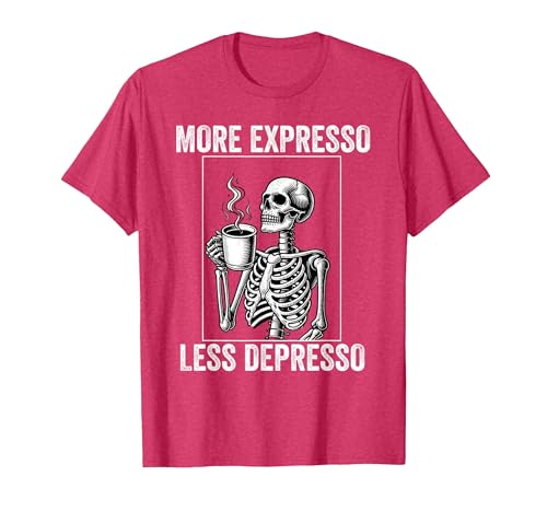More Expresso Less Depresso Funny Coffee Expresso Lover T-Shirt, Men, Red Heather, Large