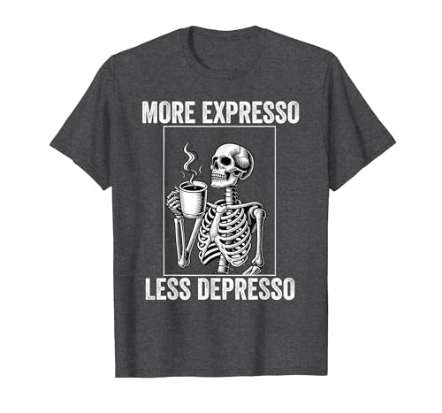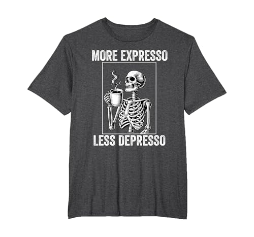 More Expresso Less Depresso Funny Coffee Expresso Lover T-Shirt, Men, Dark Heather Grey, Medium