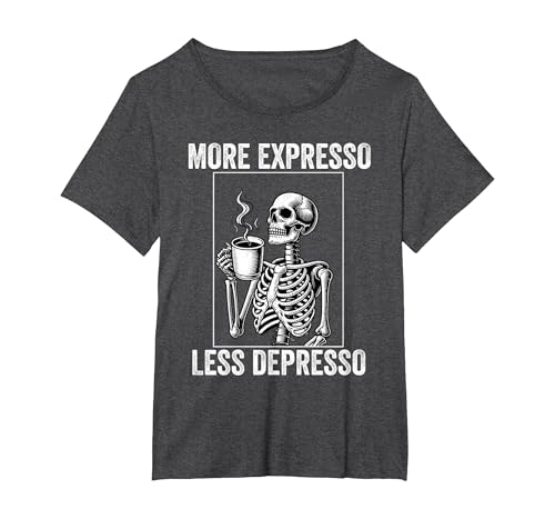 More Expresso Less Depresso Funny Coffee Expresso Lover T-Shirt, Women's Plus, Dark Heather Grey, 6X