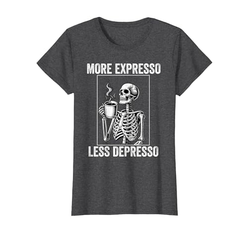 More Expresso Less Depresso Funny Coffee Expresso Lover T-Shirt, Women, Dark Heather Grey, Medium