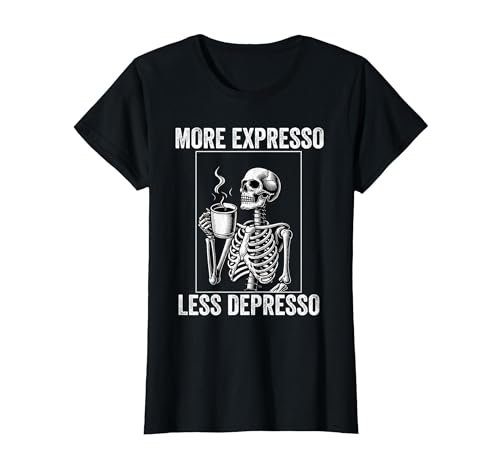 More Expresso Less Depresso Funny Coffee Expresso Lover T-Shirt, Women, Black, X-Small