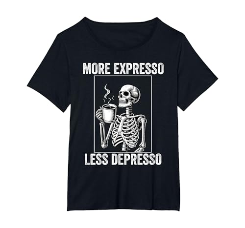 More Expresso Less Depresso Funny Coffee Expresso Lover T-Shirt, Women, Black, X-Large