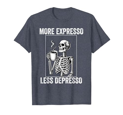 More Expresso Less Depresso Funny Coffee Expresso Lover T-Shirt, Men, Heather Blue, Medium