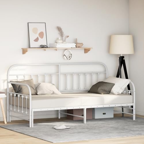 Teenpull Extendable Day Bed, White, 90 x 200 cm, Robust Steel Bed Frame, Modern Platform Bed for Bedroom, Guest Bed