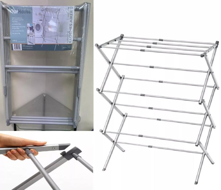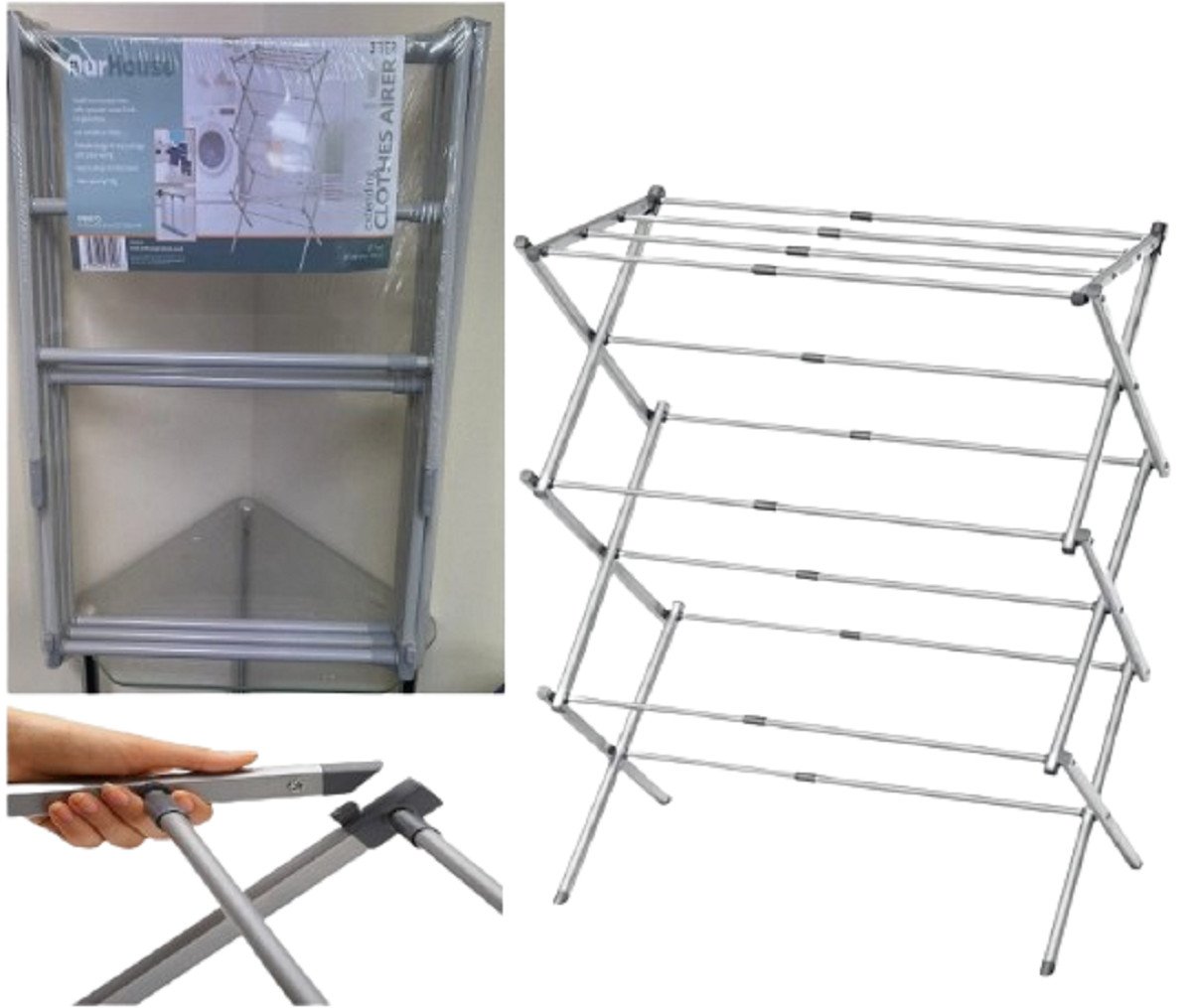 3-Tier Extendable Clothes Airer Drying Rack Metal Frame Laundry Horse Hanger