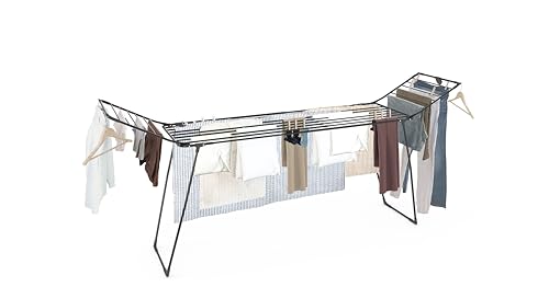 Colombo Brooklyn Extendable Clothes Airer | Extendable Clothes Airer in Rustproof Steel with XXL Telescopic Wires - 195-260 cm, Wings Block and Hanger Holder | Drying Rack 25 m | Made in Italy
