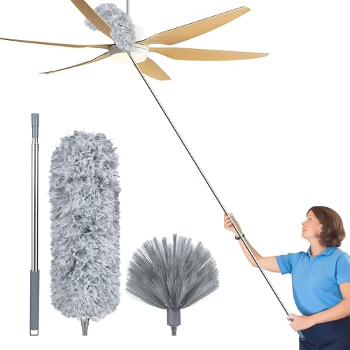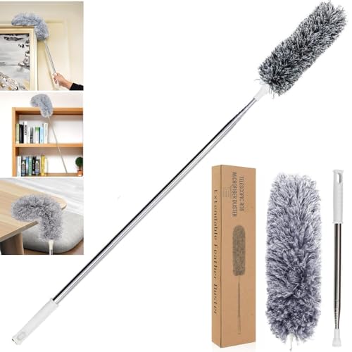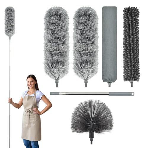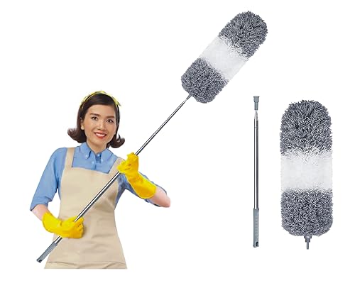 Fogray Extendable Feather Duster on a Stick, Bendable Microfiber Duster with Extra Long Telescopic Extension Pole and Cobweb Brush Extendable, Washable Dusters for Cleaning Roof, Ceiling Fan, Cobweb