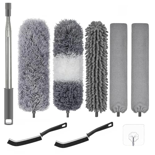 Extendable Feather Duster, 10PCS Bendable Microfiber Duster, Cobweb Brush,Detachable Gap Dust Brush with Extension Pole Up to 100'',Long Dusters for High Ceiling and Fans,Furniture