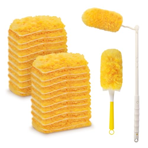 Hanqing 20 Pcs Dust Magnet, Duster Refills, Extendable Duster for Flash and Swiffer, 360 Degree Duty Microfibers Dusting Kit, with 1 Adjustable Handle, 1 Fixed Handle for Home Dust, Car Dashboard