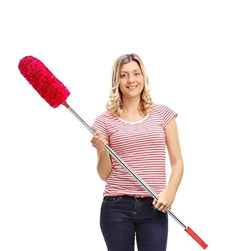 Feather Duster, Extendable Duster Microfiber Long Extension Pole Scratch Resistant Cover, Washable, Cleaning High Ceiling Fans, Blinds, Cobweb (Red)