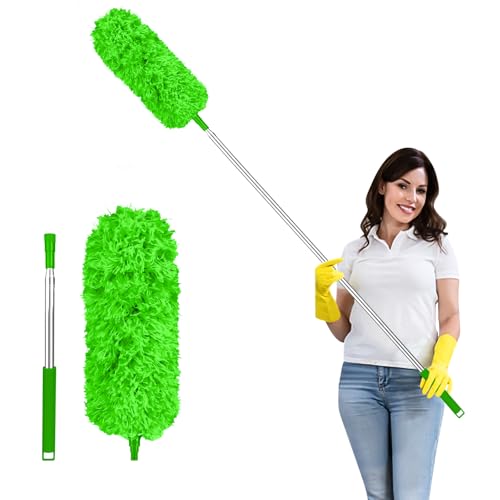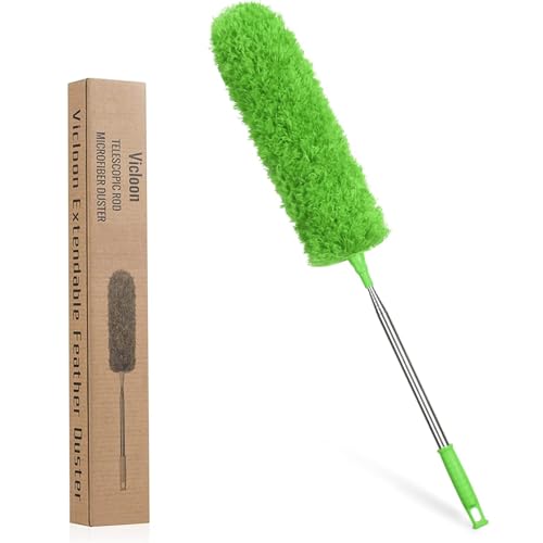 Vicloon Extendable Microfiber Duster, Feather Duster with Extra Long 100 inches Telescopic Pole and Bendable Head, Hand Duster for Cleaning High Ceiling Fans, Cars, Blinds, Cobweb Green