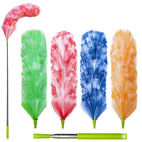 BAIDOON 4 Pack Washable Electrostatic Duster, Extendable Pole 25" to 55", Feather Duster for Cleaning - Attracts Dust Like a Magnet!