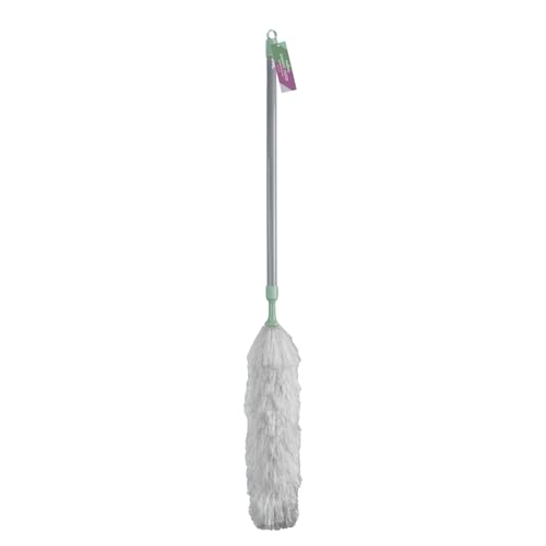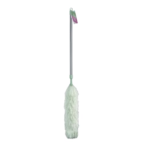 JVL Synthetic Telescopic Duster, Extendable Handle for High Reach Dusting, Lightweight Household Cleaning Tool – Green