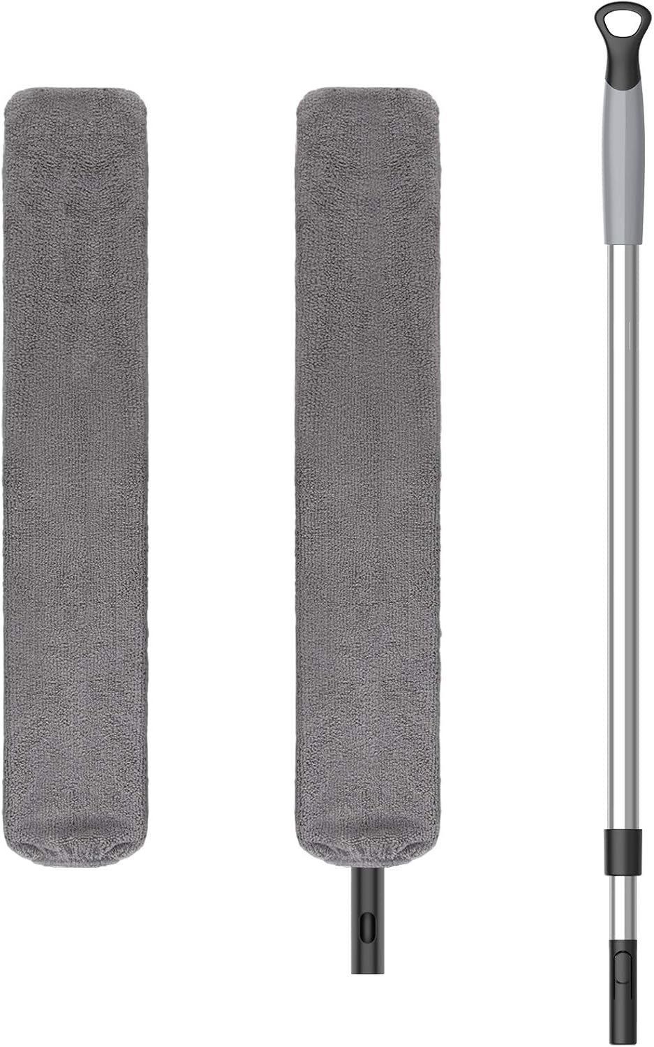 Fogray 2026 Upgraded Extendable Feather Duster with Soft Silicone Cap, Telescopic Long Handled Microfiber Dusters for Cleaning, Cobweb High Ceiling Fan Roof Blinds, Washable & Bendable(ash gray)