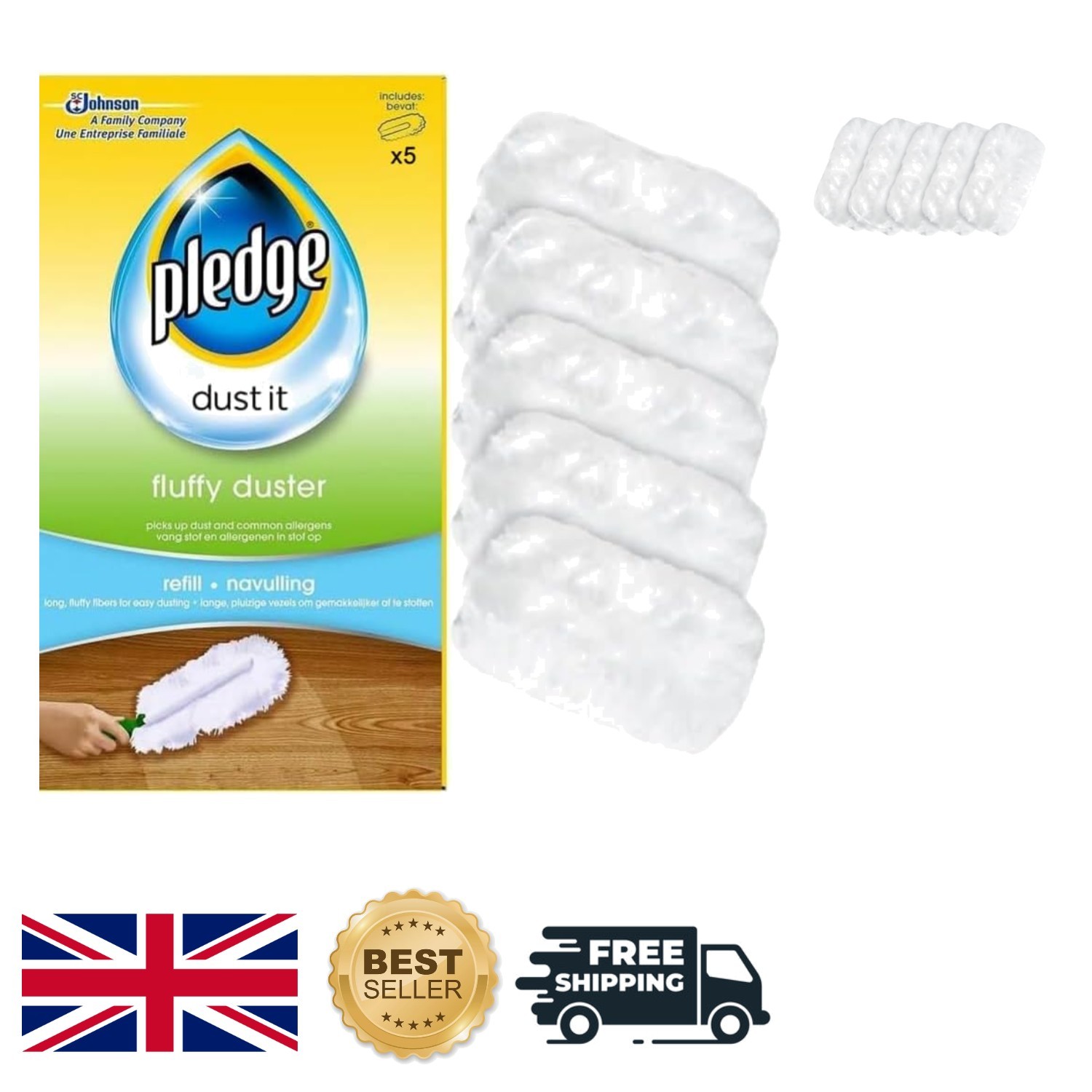 Extendable Pledge Duster Refill Pack of 5 - White Feathers for Superior Dusting