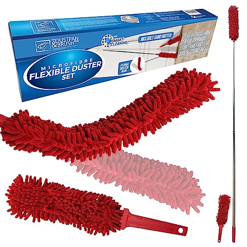 ARCUS 3 Pack Microfibre Extendable Duster, Washable Extendable Feather Duster For Cleaning, Flexible Duster For Home, Office, Bathroom, Garage, Window, Cupboard - Blue, Red, Green