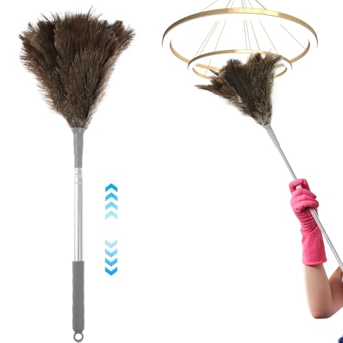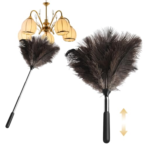 Extendable Feather Duster, 115cm Ostrich Feather Duster Extendable and Reusable, for Cleaning High Ceilings Lights, Cupboards, Home, Car, Office
