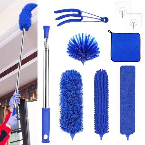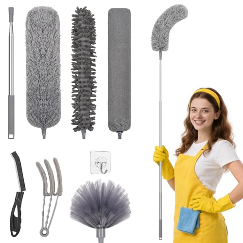 Apasiri 8 PCS Extendable Duster Cleaning Kit, Telescoping Pole for High Ceiling, Microfiber & Chenille Dusters, Cobweb Brush, Crevice Cleaner, Blind Cleaner, Washable Dusting Tools for Home