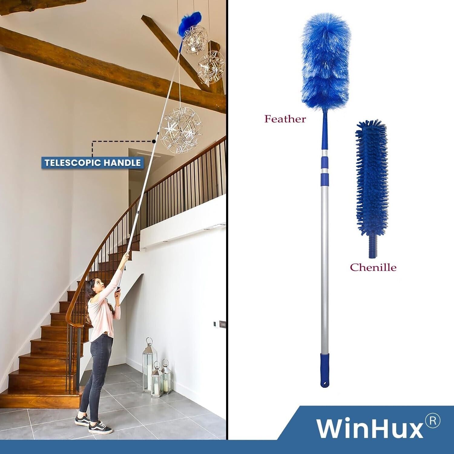 WinHux Feather Duster Extra Long Reach Feather Duster Extendable with Telescopic Handle, Dusters for Cleaning, Dust Cleaner, Long Duster for High Ceilings, Bendable and Washable - 3.47 Metre (136")