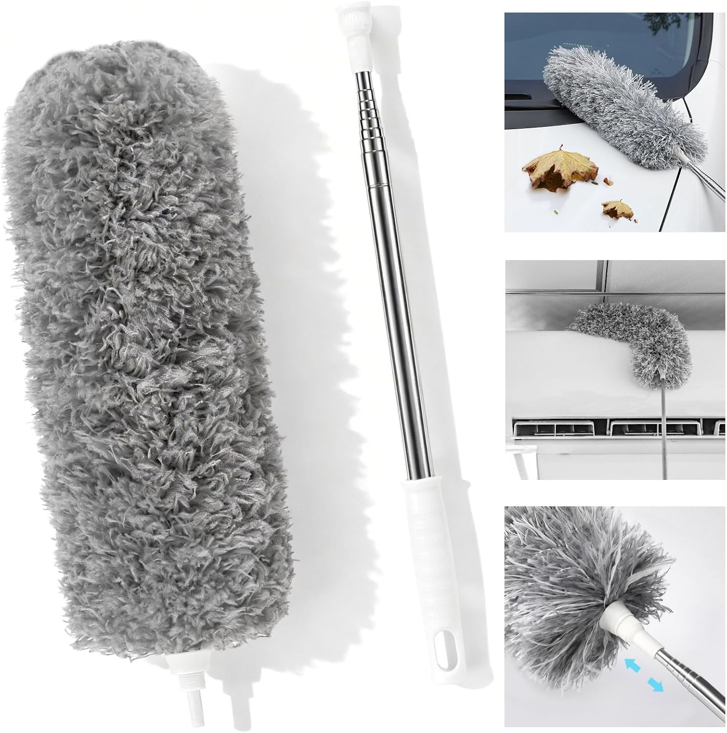 YeewayVeh Car Duster, Extendable Car Exterior Scratch-Free Cleaning Tool, Soft Microfiber Pollen & Dust Brush, Light Gray