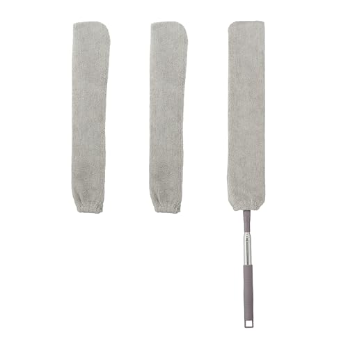 Fogray Extendable Feather Duster for Cleaning, Telescopic Long Handled Dusters Dust Magnet Cleaner Brush Pole Supplies, Cobweb Roof High Ceiling Fan Blinds Cars (3Pcs-Grey)