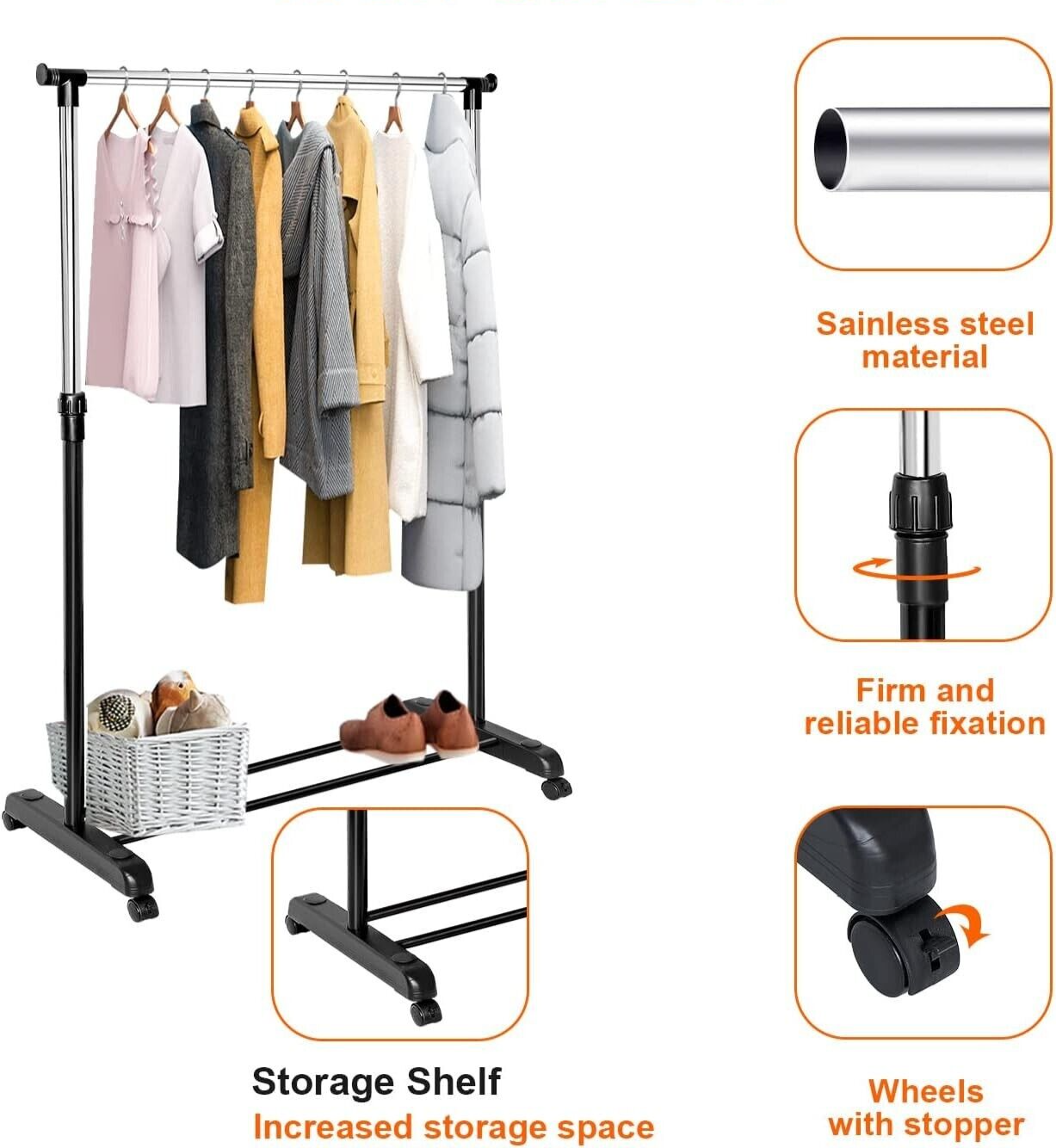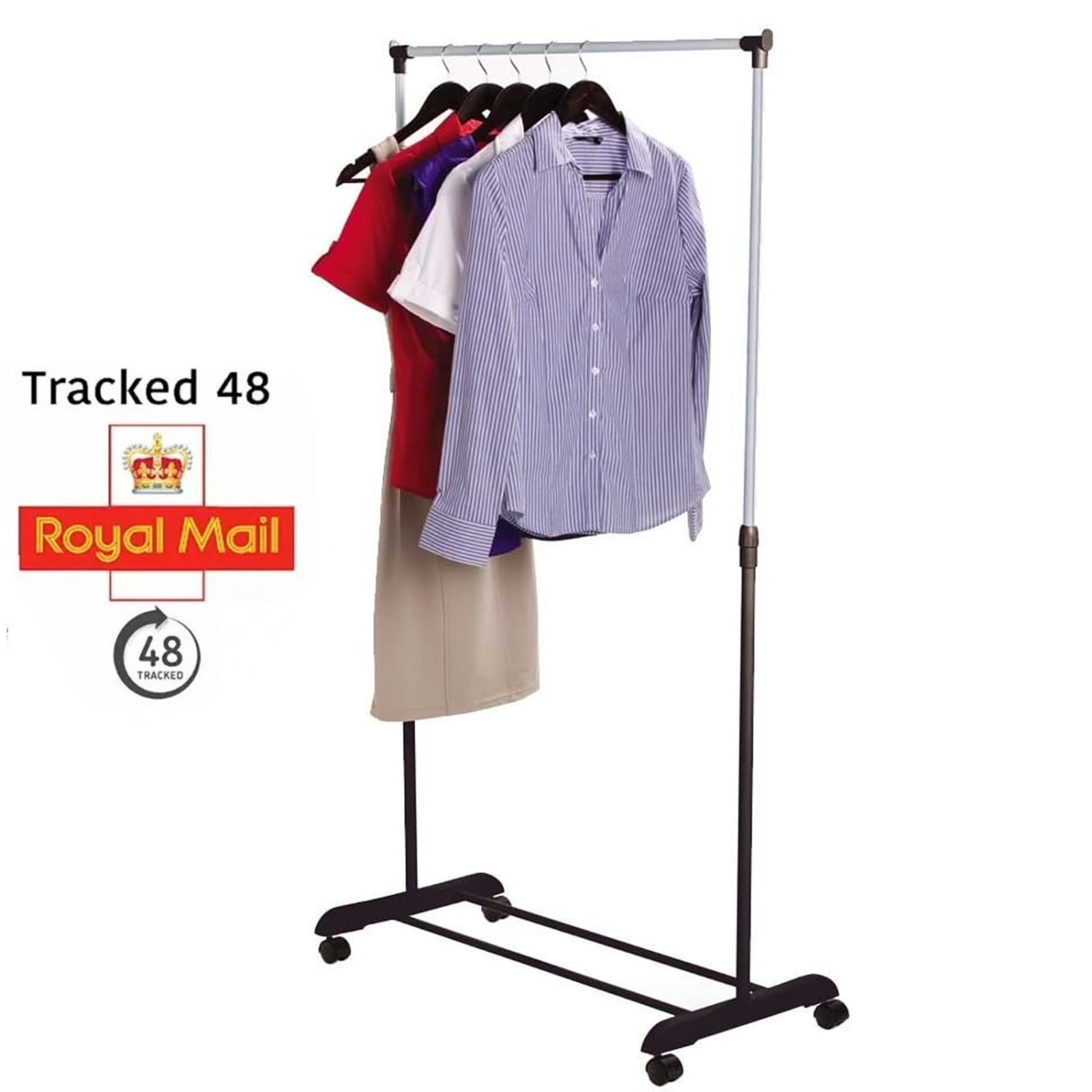 Extendable Rolling Garment Rack Steel Cloth Hanger Clothing Hanging Rail