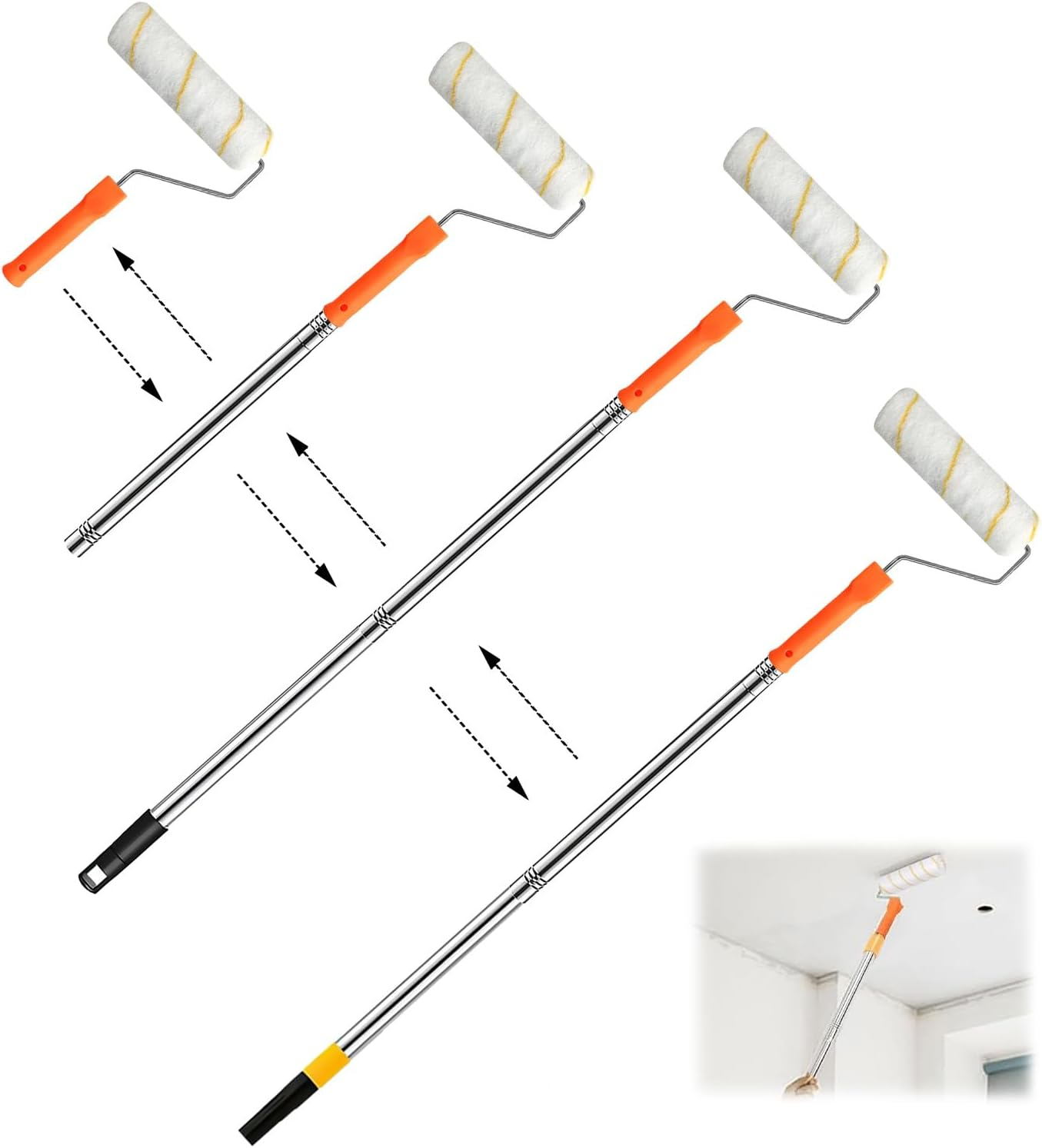 2M+-Paint Roller,Paint Rollers with Extended and Removable Handles,extendable Paint Roller+Thickened Rod Paint Roller Extension Pole, Mural Brush for Walls and Ceiling (Paint Roller Kits)