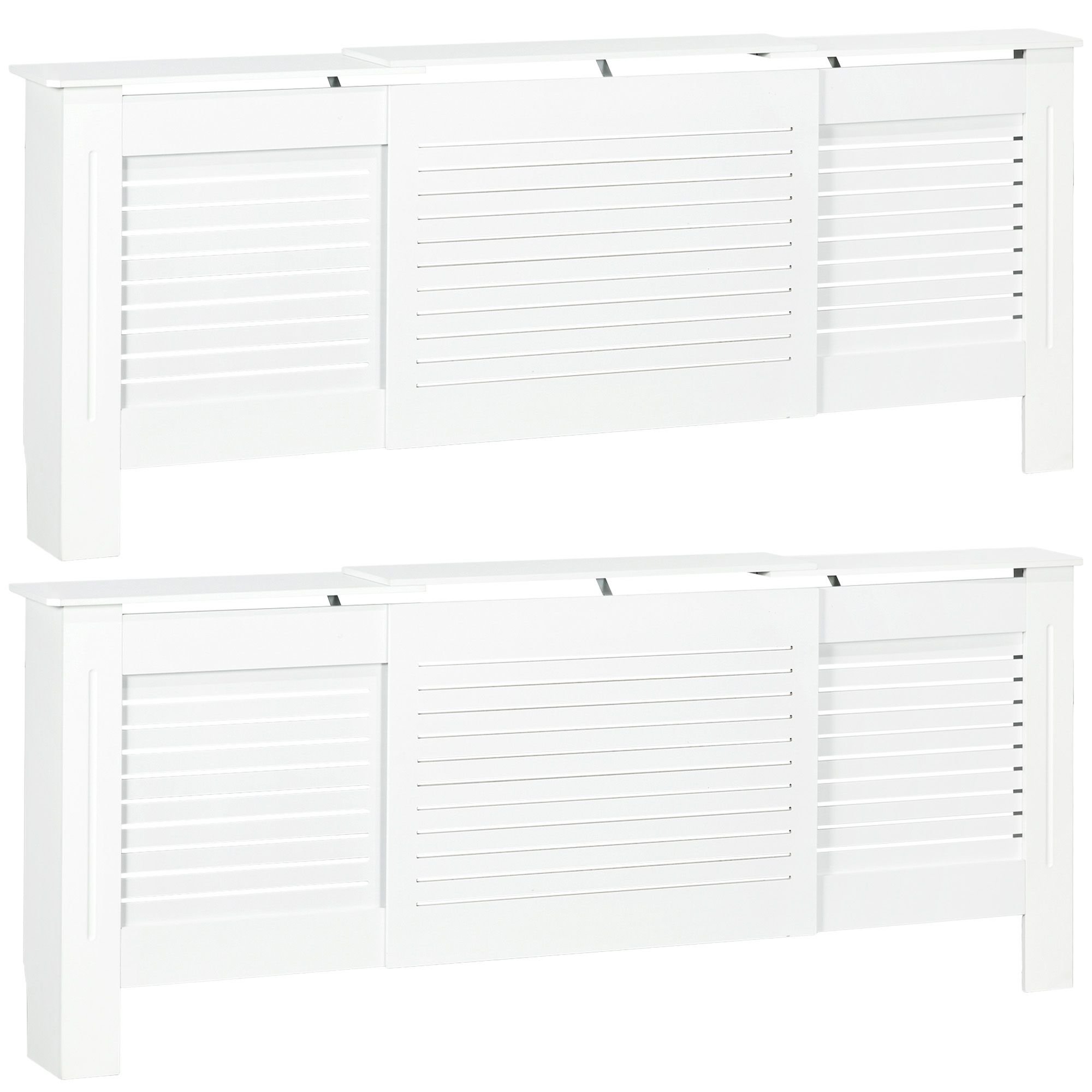 HOMCOM Extendable Radiator Cover w/ Slatted Design MDF, Set of 2, White