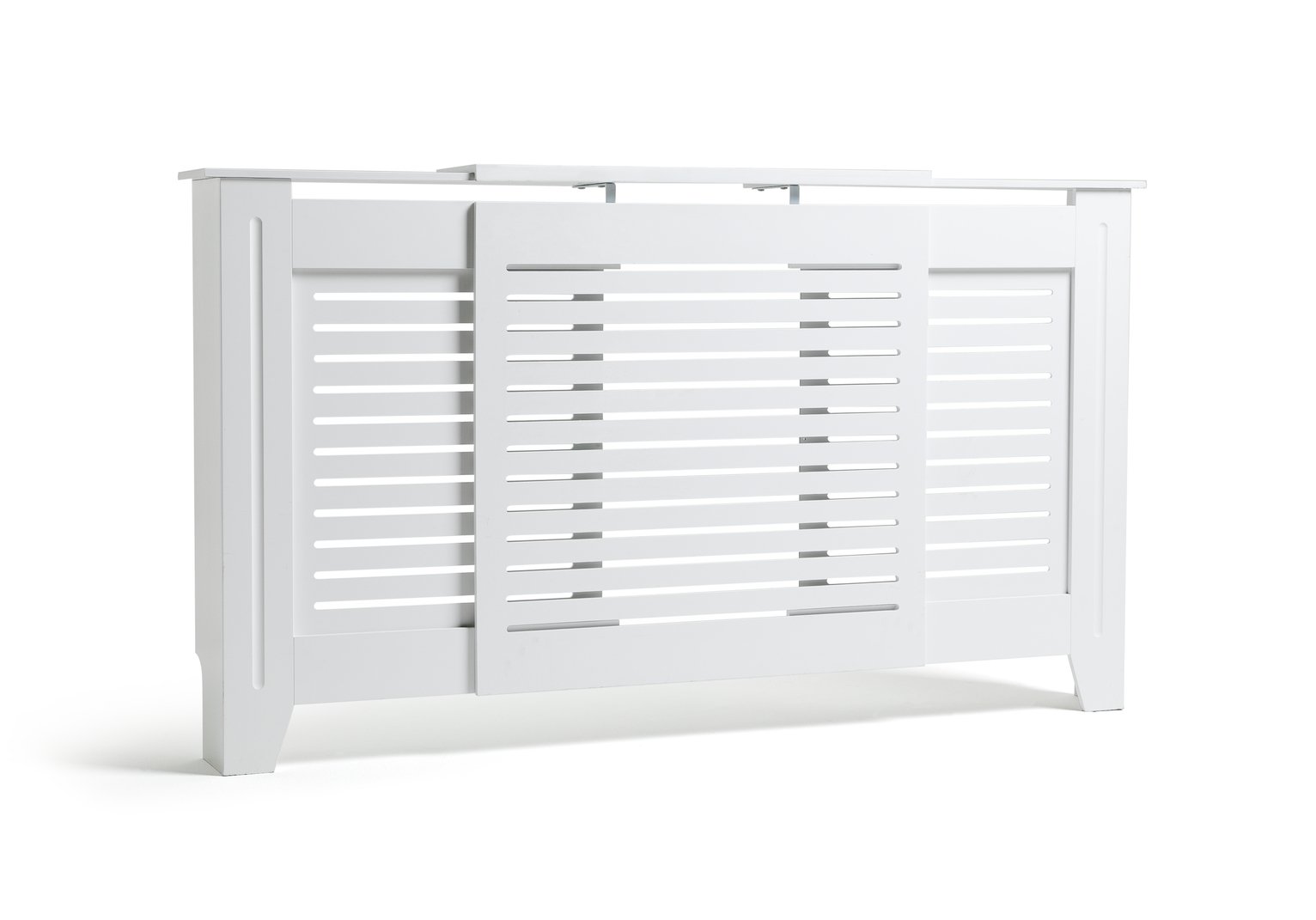 White Extendable Radiator Cover Cabinet Shelving Slatted Design MDF Living Room