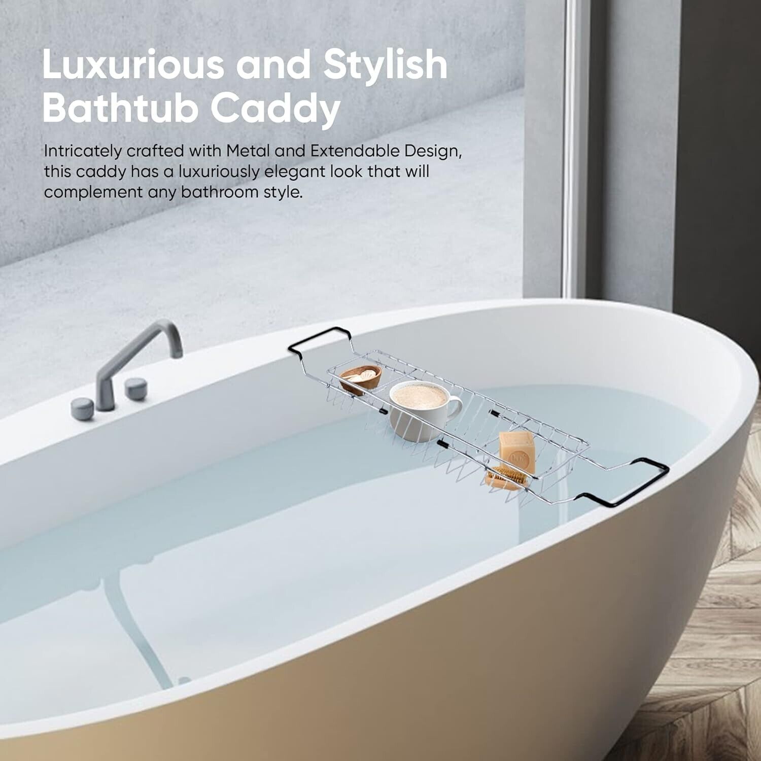 Blue Canyon Extendable Over Bath Rack| Durable Plastic Shower Caddy| Convenient Bathroom Storage for Soaps, Sponges, Bath Bombs & Glasses of Bubbly| (Slate) (19.5 x 35 x 57 cm, Slate)