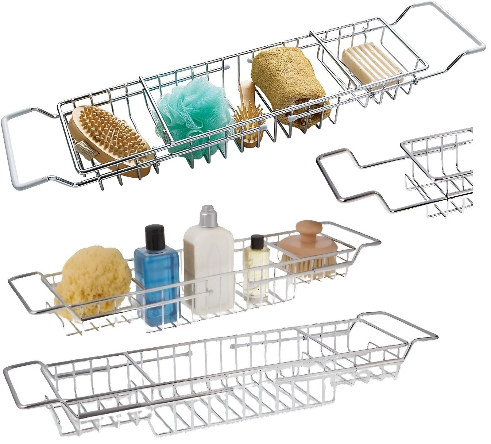 Chrome Bath Rack Over Bath Tub Rack Extendable 3 Compartment Shower Caddy Shelf