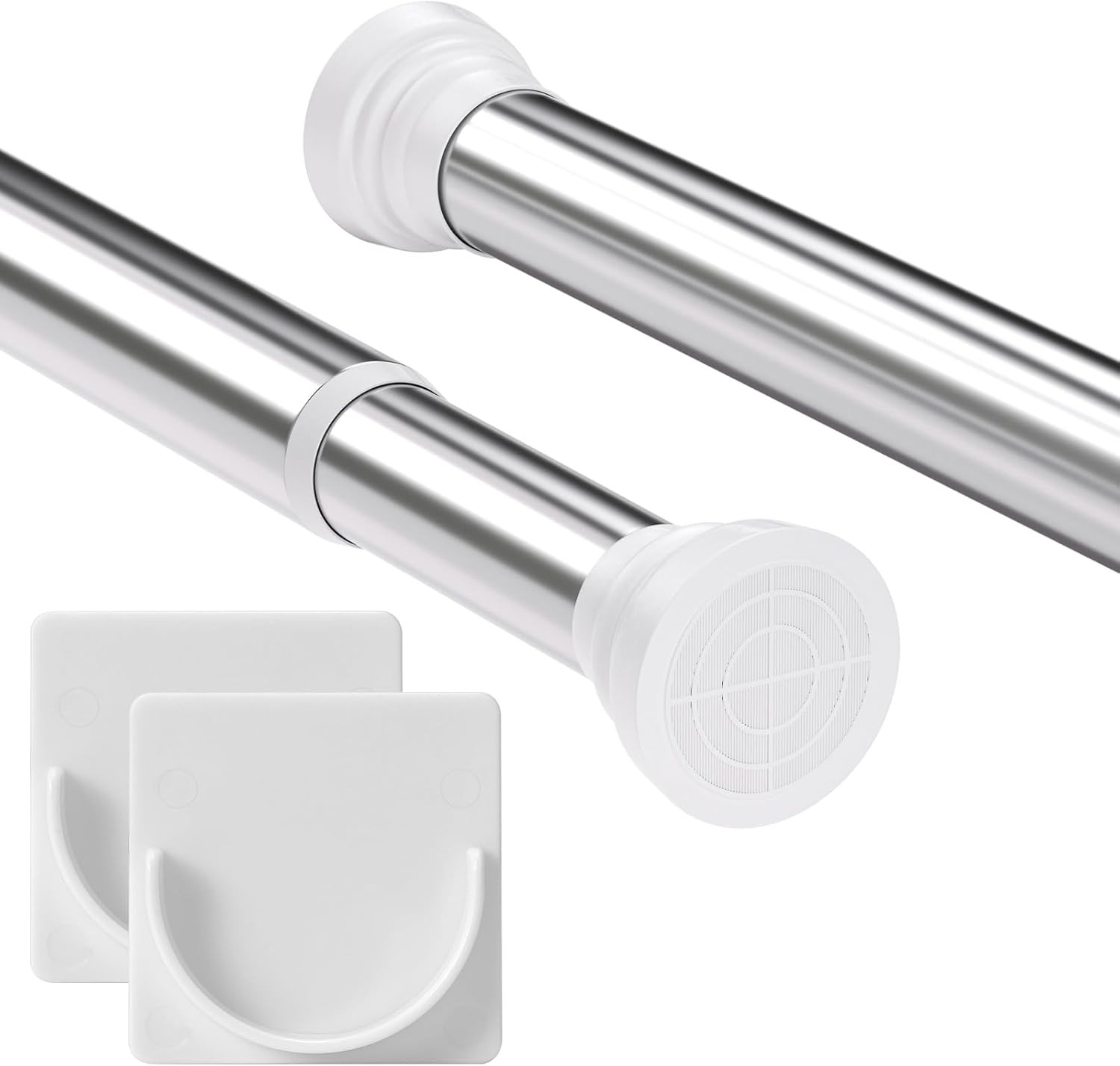 2PCS Tension Rod Extendable Shower Curtain Pole No Drill Curtain Pole Shower Poles Extendable Curtain Rod No Drill for Bathroom, Window, Door, Closet, 65-85cm White(Diameter 25 mm)