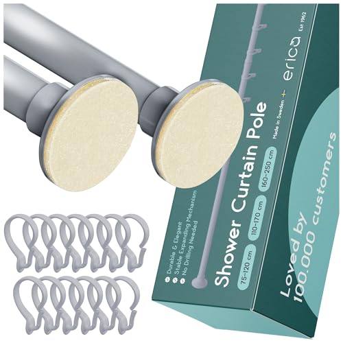 Erica Extendable Shower Curtain Pole 110-170 cm, Premium Swedish Steel Tension Rod, Matte Grey