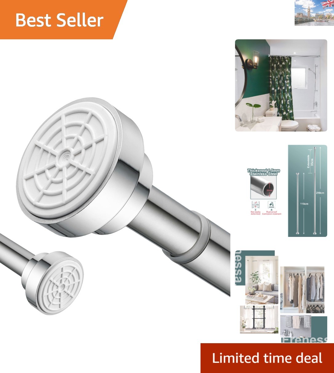 Stainless Steel Extendable Tension Pole Shower Curtain Rod 115-210cm Waterproof