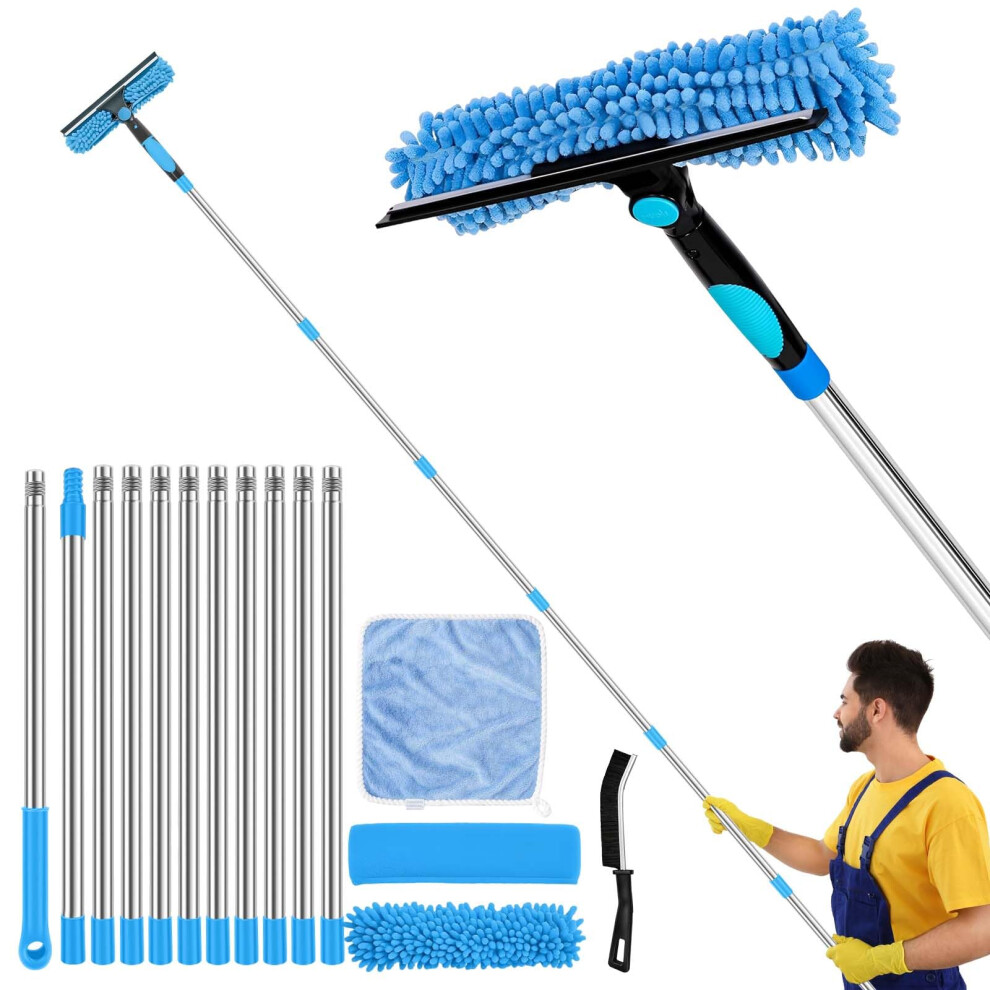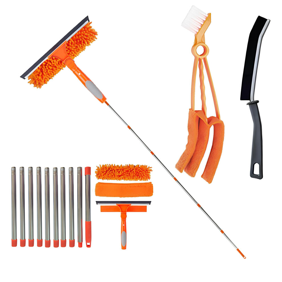 Orifesio 4.3M Long Reach Window Cleaning Kit, Window Cleaning Equipment with 10 Extension Pole, 2 Crevice Brush & 3 Microfiber Cloth, Extendable Window Cleaner Pole for High Window Car Glass, Blue